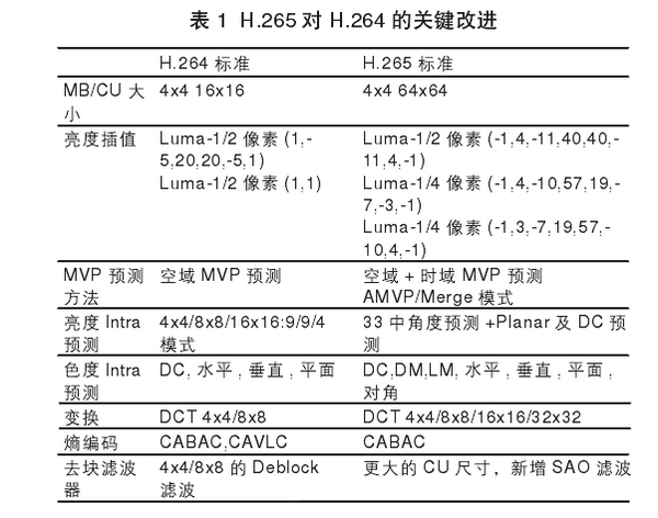 H.265H.264的关键改进如下图: