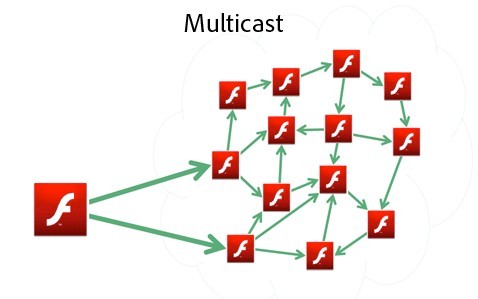 RTMP(Real- Time Messaging Protocol)协议用于单播, RTMFP(Real‐Time Media Flow Protocol)协议用于多播。RTMP是基于TCP的,RTMFP是基于UDP的。UDP在传送直播数据方面比TCP有较多的优势,比如减少延时、对丢包的容忍,虽然在可靠性上有所损失。不象RTMP, RTMFP支持Flash Player直接发送数据给另一个,而不经过Server。服务端连接将被用来初始化并交互一些客户端之间的信息,也可用来进行服务端调用或者作为进入其他系统的网关。FMS4也将用来为用户提供地址认证服务和NAT地址转换服务,避免用户陷入混乱。